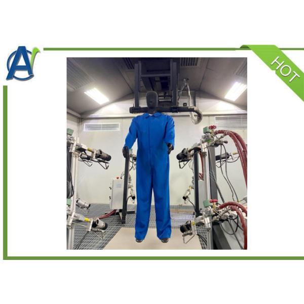 ISO 13506 est method uses the Manikin to be placed in a fire environment where the simulated heat flow, burning time and flame distribution can be controlled to predict the location and extent of the human skin to reach the second and third degree burns, thereby evaluating the overall thermal protection of the clothing performance. Its biggest feature is that it can quickly, accurately and repeatably simulate the heat exchange between the human body, clothing, and the environment under flash fire conditions. In the experiment, a burning dummy wearing fireproof clothing was placed in a simulated combustion environment in the laboratory and exposed for a certain period of time. 124 thermal sensors distributed on the manikin were used to measure and calculate the conduction to various parts of the human body through the tested clothing. The heat and temperature of the human body are predicted to burn the human body, and the thermal protection performance of the clothing is evaluated. Before the experiment, the average heat flow is calibrated to reach the standard 84±2kW/m2. The burning process is recorded through video and the clothing is observed in real time during the burning process.